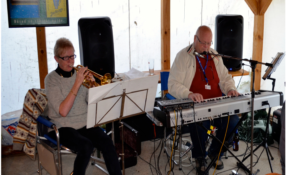 På ”Happy hour” er det alltid stor stemning, og når Arild på keyboard og Synøve på trompet spiller opp, da er det ikke mulig å holde dansefoten i ro.